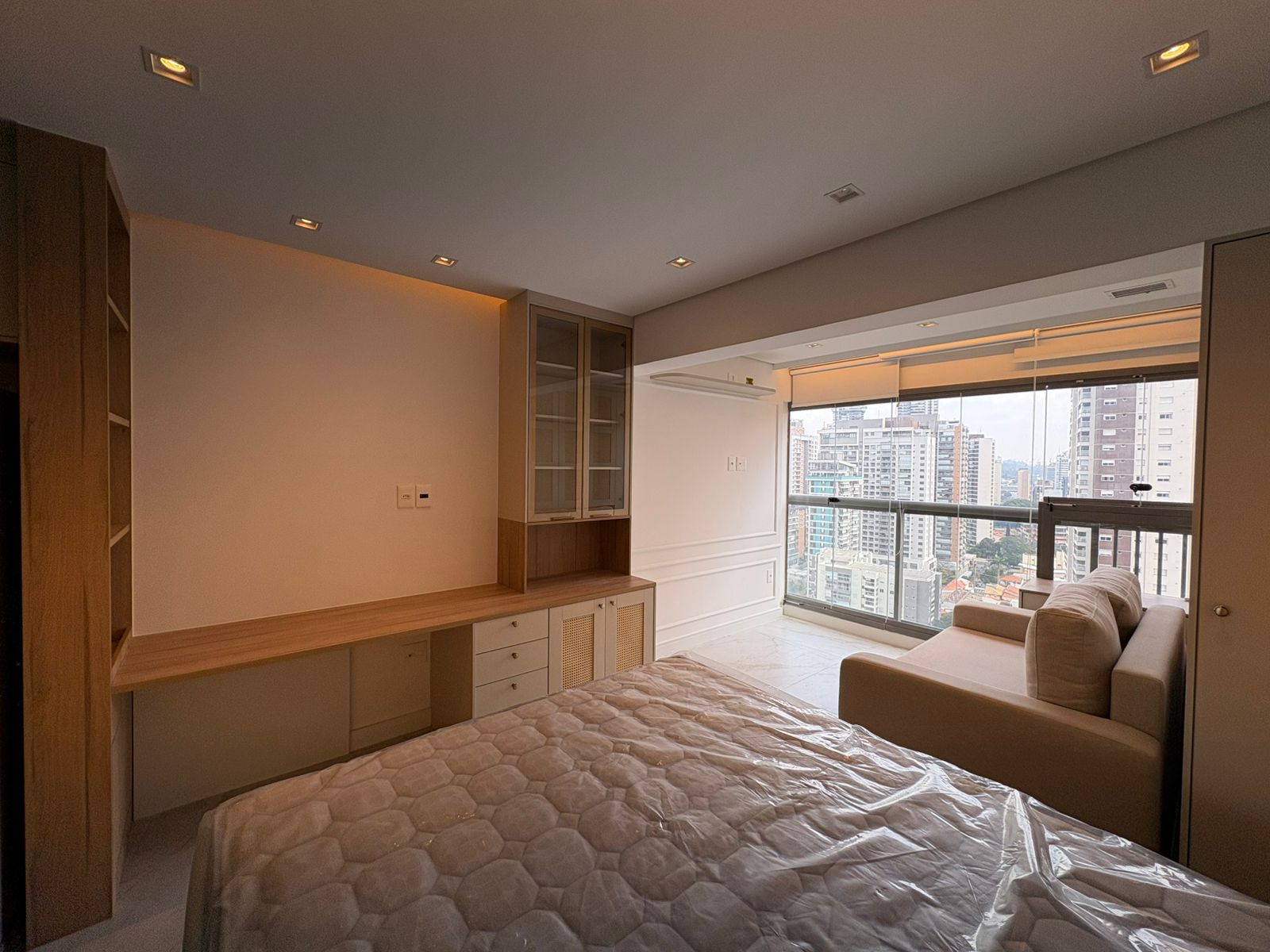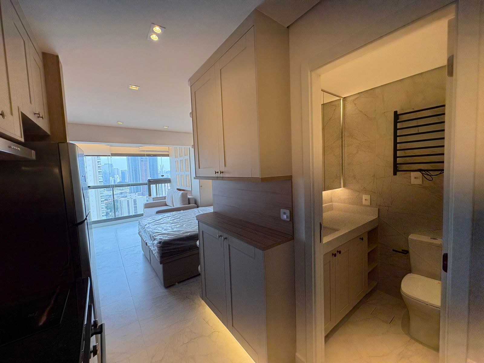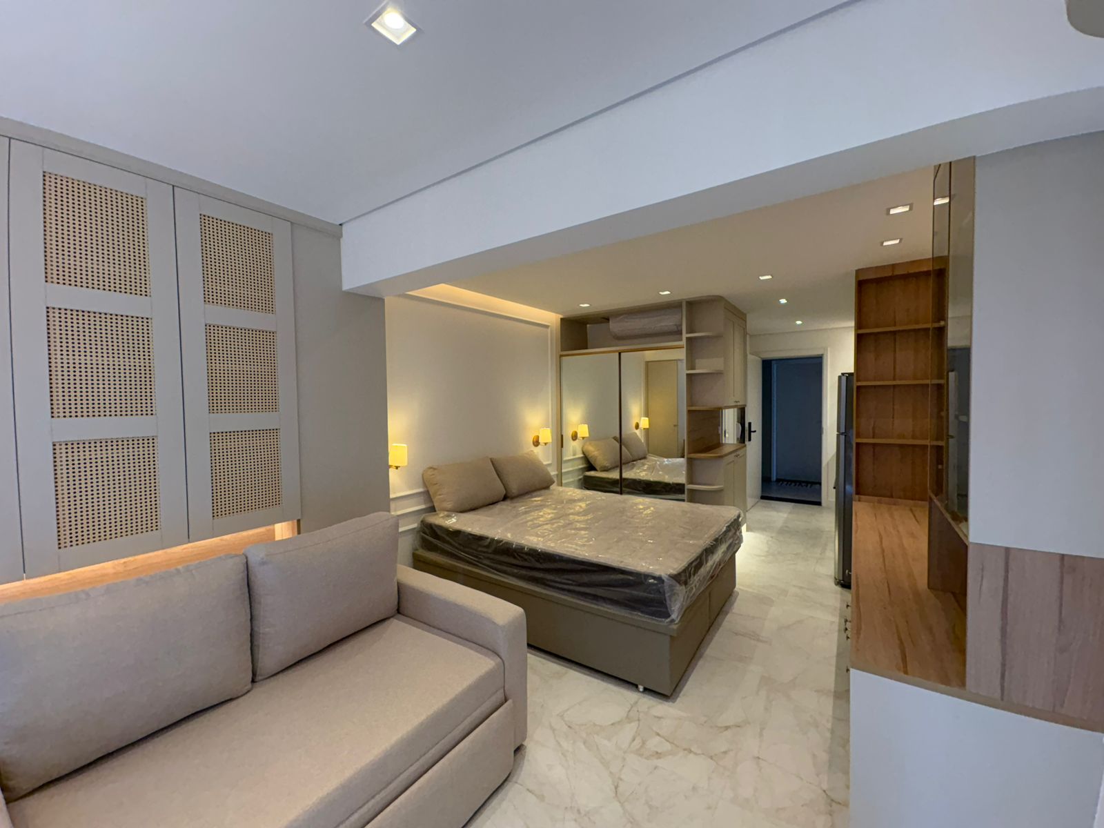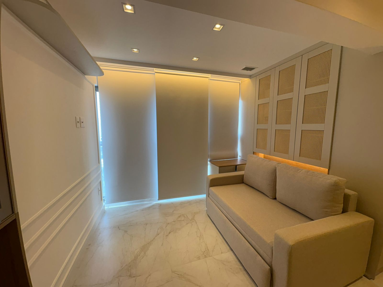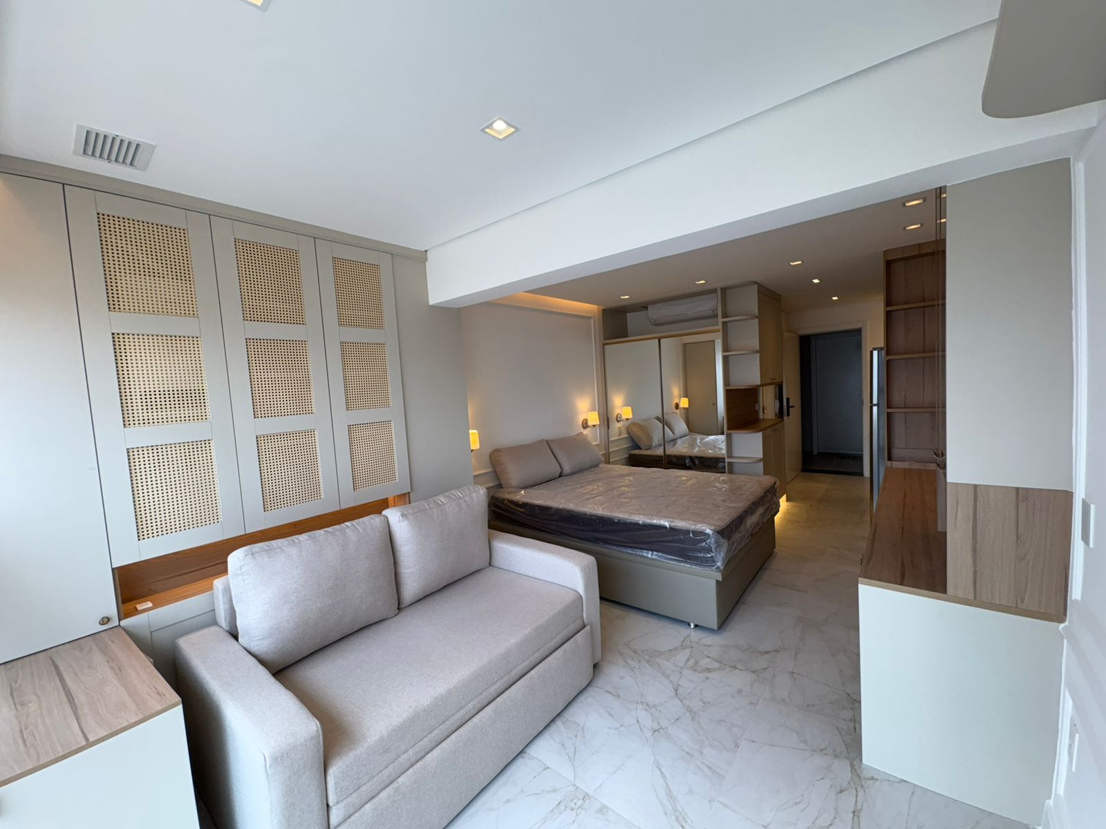 Studio muito bem planejado, com área separada para TV. Cada espaço foi aproveitado trazendo conforto, praticidade e elegância.
