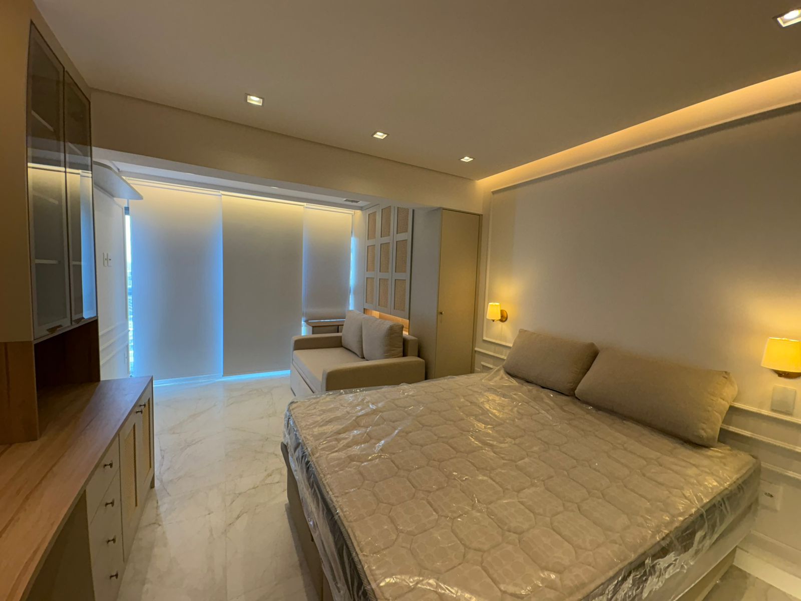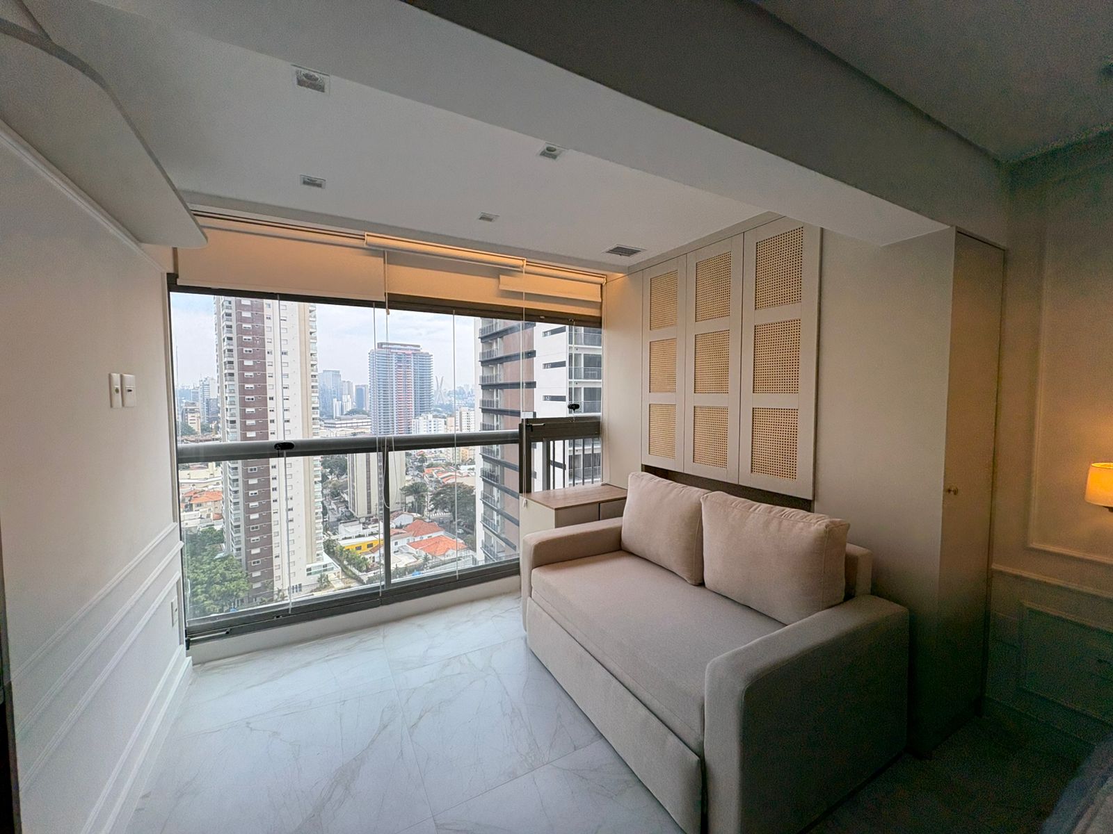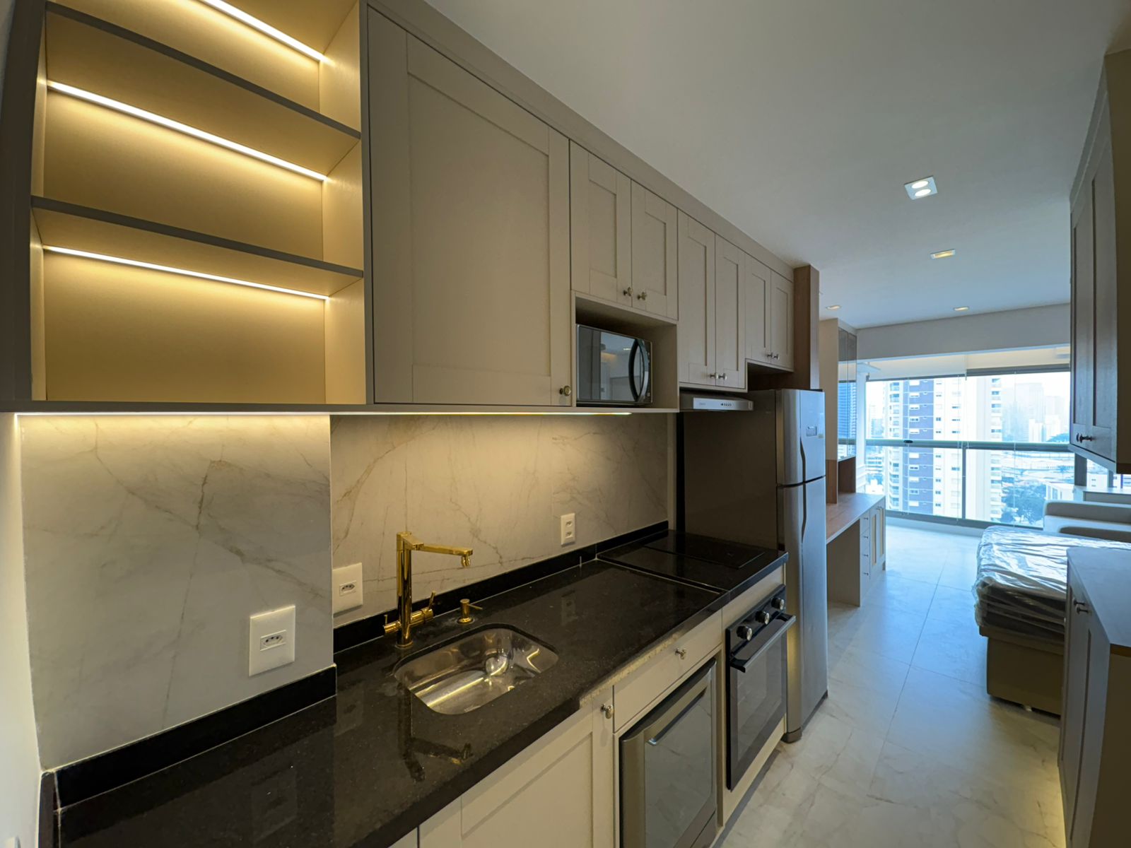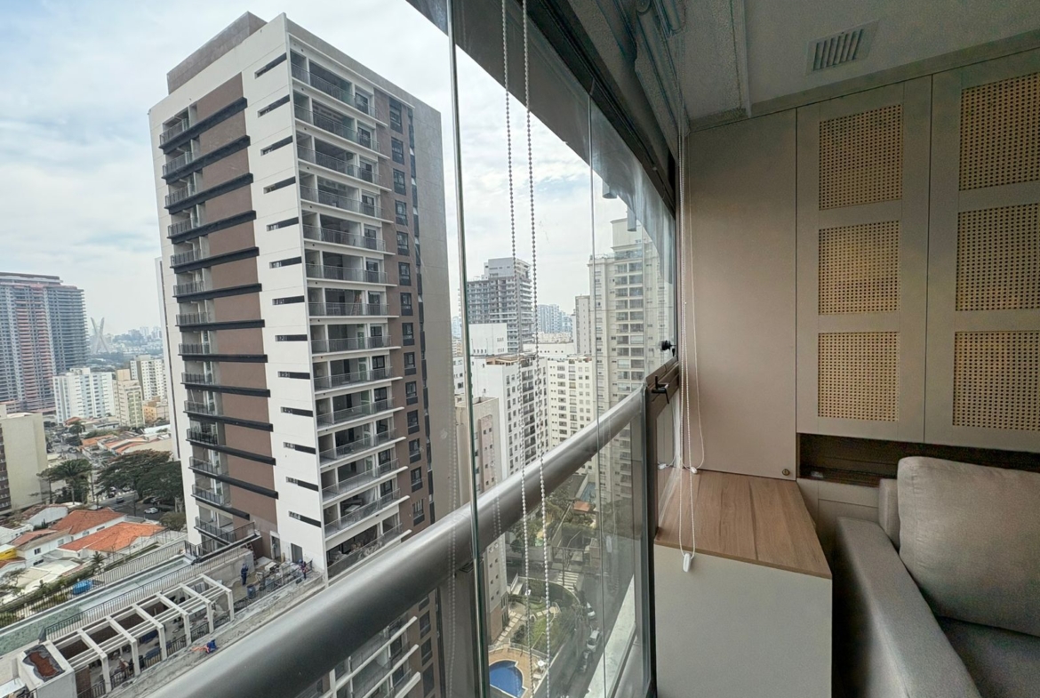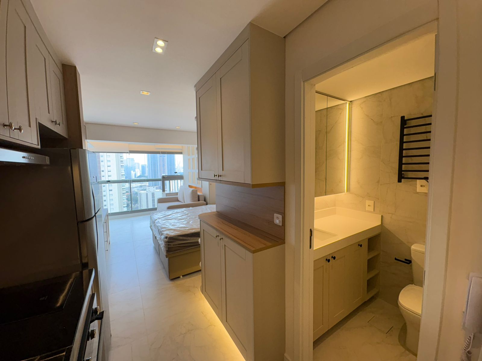 Studio muito bem planejado, com área separada para TV. Cada espaço foi aproveitado trazendo conforto, praticidade e elegância.