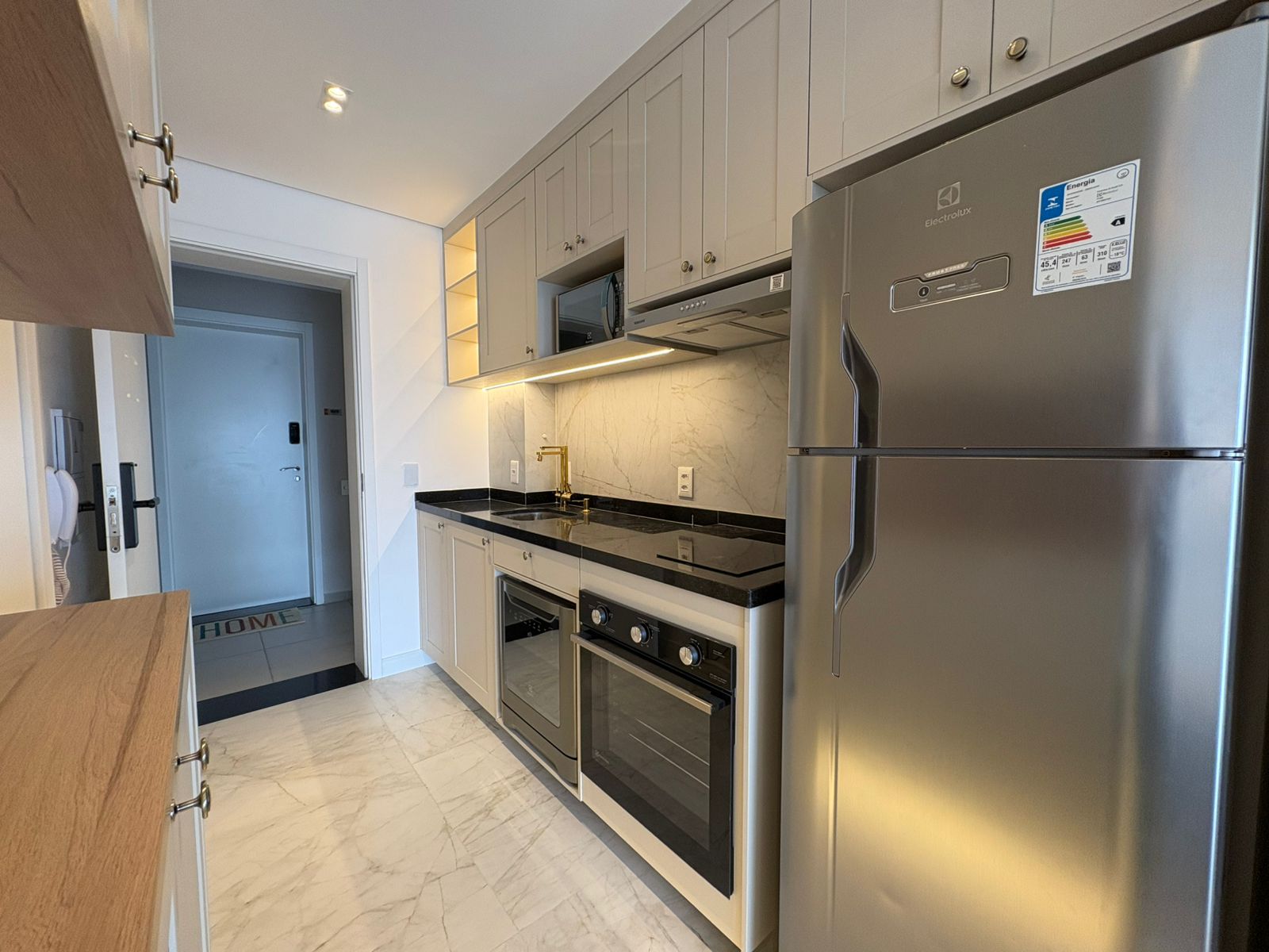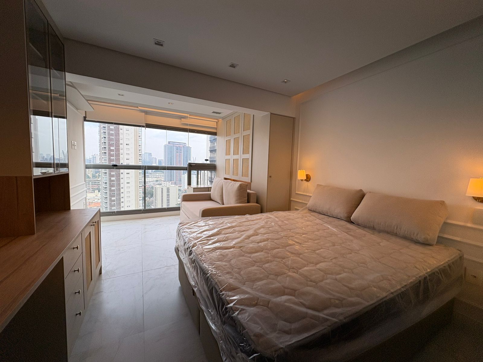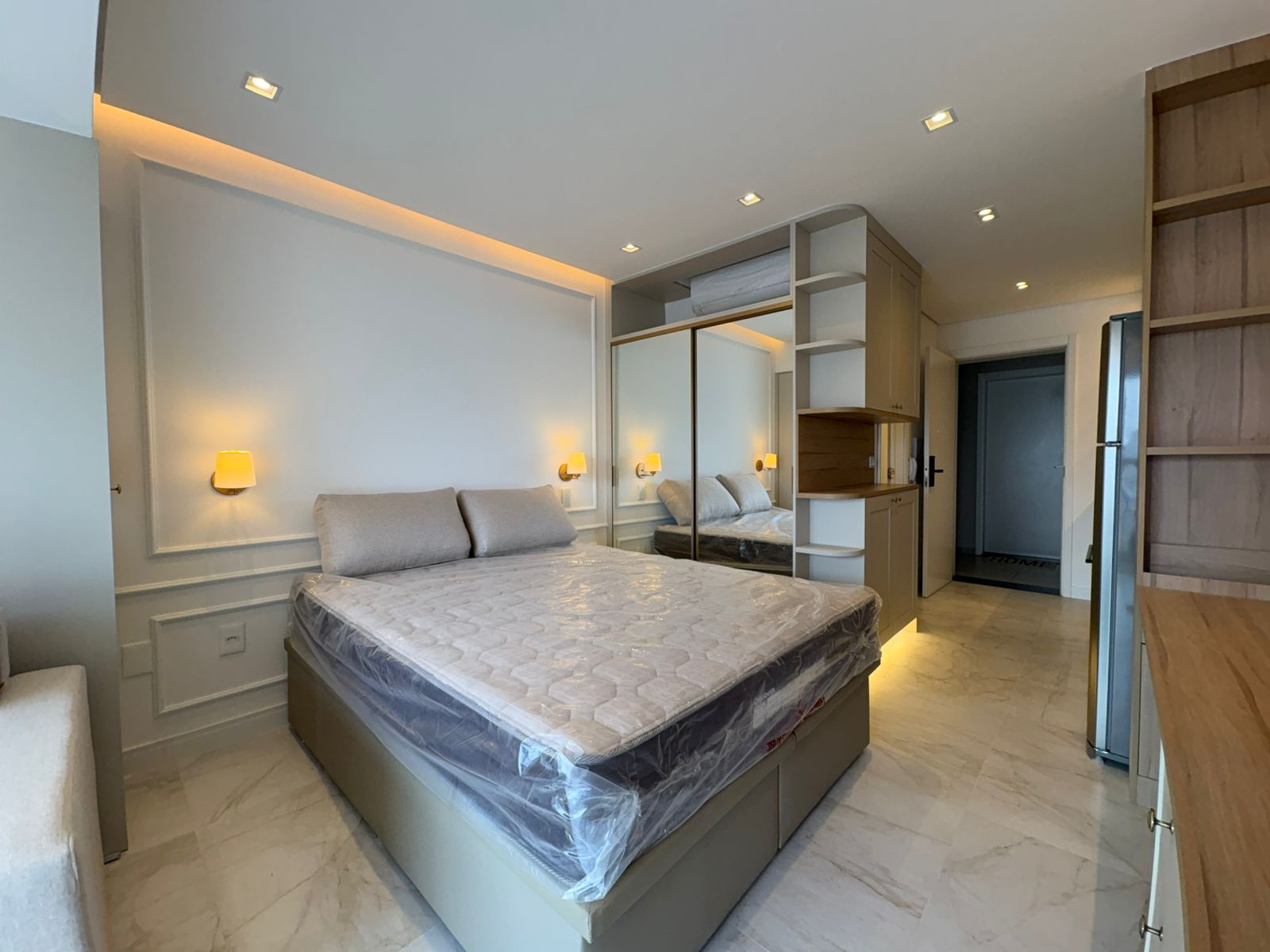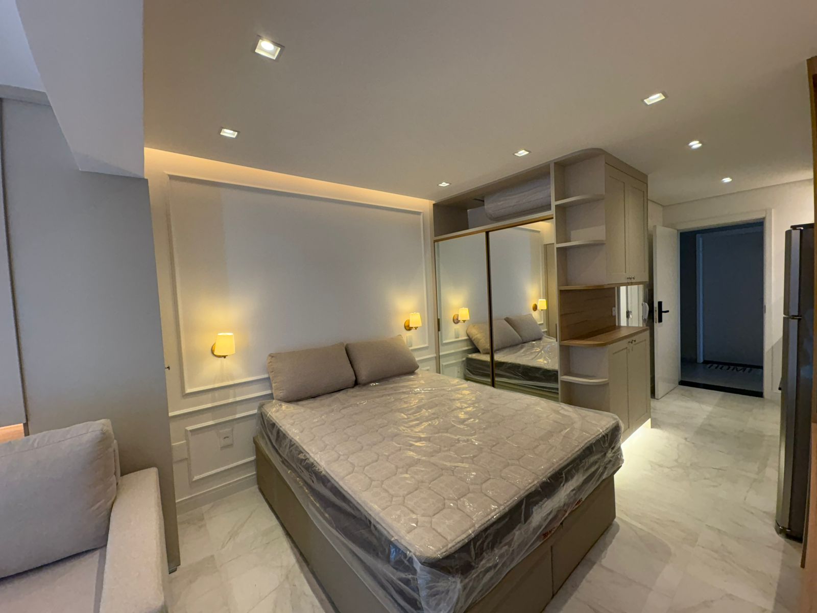 Studio muito bem planejado, com área separada para TV. Cada espaço foi aproveitado trazendo conforto, praticidade e elegância.