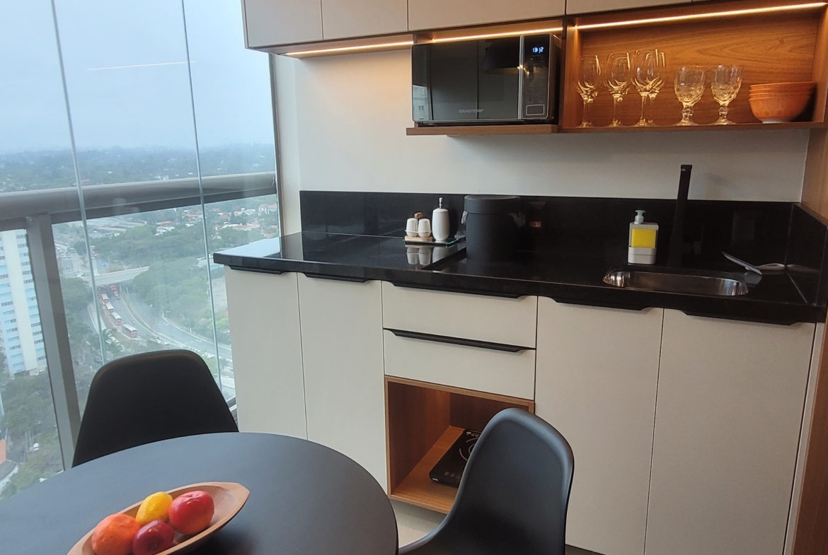 Studio completo, decorado com uma vista incrível!